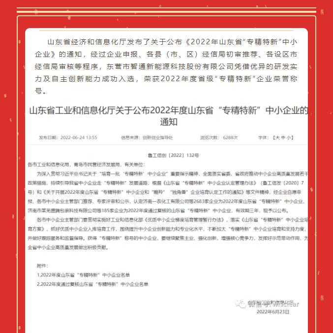 智通科技榮獲2022年度山東省“專精特新”企業(yè)榮譽稱號